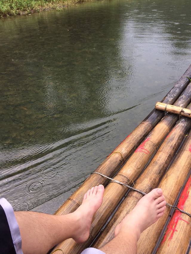 逆流坡度最大点,有些伐工没力气上去只能下去拖…我们的伐工很厉害,怒吼一声就把我们的竹筏撑了过去😊