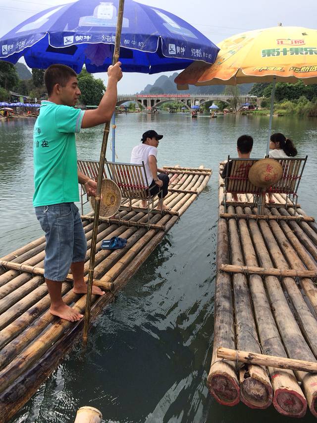 遇龙河漂流竹筏都是2人一伐,没两位要补足两位的价格