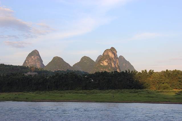 看完日出七点多走回客栈收拾东西,吃早餐出发阳朔,这次问清楚了老板,做班车15元一人