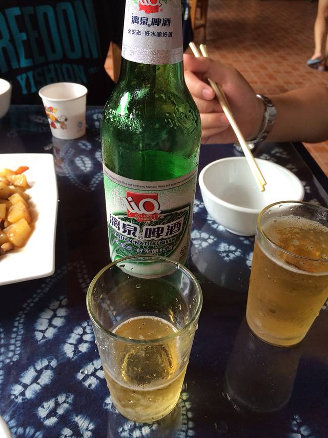漓泉啤酒,外面很热,喝杯冰冰的啤酒很舒服