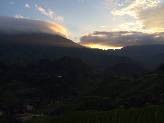 太阳第一道光束是折射在一个房子上,应该就是传说中的全景楼了,网上说能看到日出,是整个景区最高的客栈!