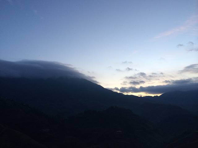 五点二十分起床,几个人在楼下硬是吃了泡面快六点钟才出发,从客栈去二号景点千层天梯只需20分钟!去到太阳还没出来,天微微亮~