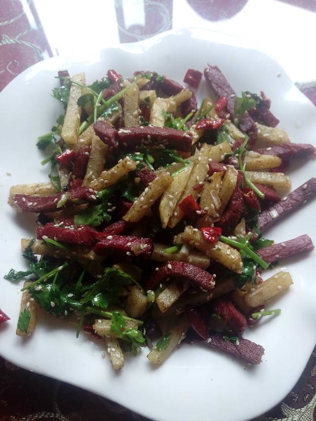 西安,看着对面的小妹妹凉皮吃得津津有味,我尝了一口,也吃不习惯。去回民街吃,一看到肉夹馍里那么油腻的肉,我就木有食欲了。图3配饭吃的,油腻腻的,也吃不习惯。不过,旁边的人都吃得津津有味!所以,能普通的米饭就吃饭,图4吃得最舒服。木有当吃货的命,又挑食的人,伤不起啊!