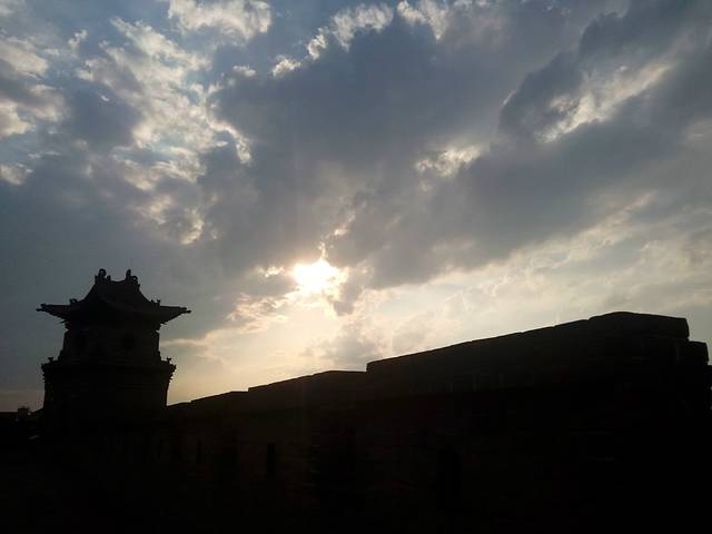 傍晚爬上古城墙,边走边看落日。城墙只走了四分之一。北门上,西门下了。