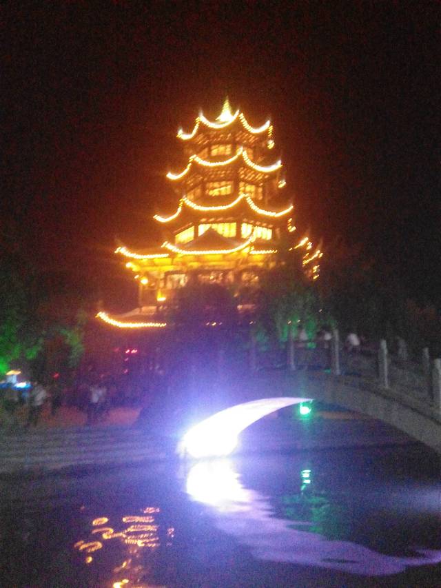 晚上,随便吃了一下他们这里的特产——糍粑(我们家乡也有,虽然方法不一样,还是觉得家乡的好吃\(^o^)/~),再啃了一根玉米(吃腻了!)。准备去看夜景。