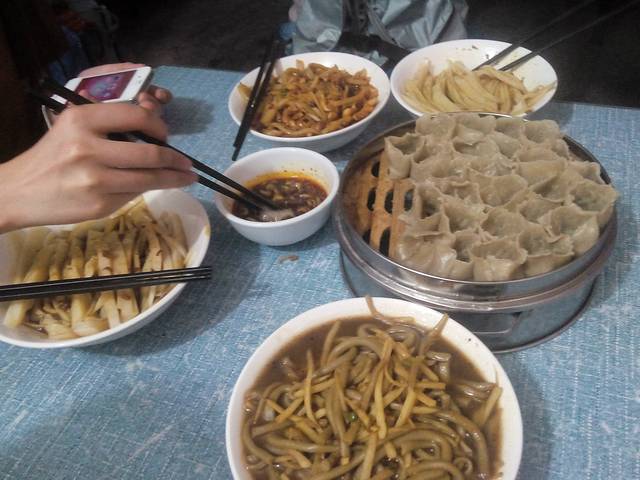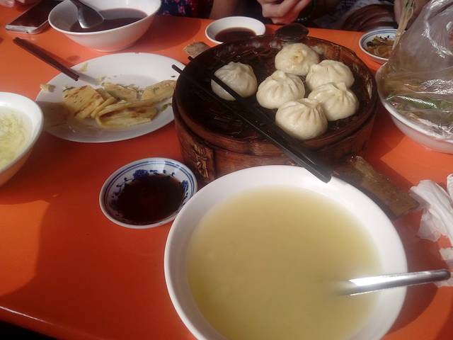 我本身不是吃货,所以美食对我来说没什么吸引力。而且北方的面食和南方的很不一样,我是真心吃不习惯。在山西第一个晚上吃了面食之后,就再也不碰山西的面食了,吃不习惯的我觉得很不好吃,不过其他的驴友吃得津津有味!第二天早上吃的小笼包外面的皮也吃不习惯。