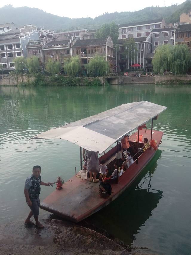 早起,整理行李。小高早上的火车,就没有再逛了。我是下午的,就出去溜达,看看白天的镇远。很安静,很舒服。大排档、咖啡馆,都没开。湖边,偶尔看到大叔大妈在晨练。即使10点多,人也不多。旅店出来有个渡口,可以摆渡去对岸。1元一人。不过,只有一艘,所以要等对岸的回来才行。我当时在渡口没看到船,就看到几个人蹲在渡口,还他们在想干什么呢.后来走到对岸这里,才想起来。在商业街上吃了一碗馄饨,逛起来了。