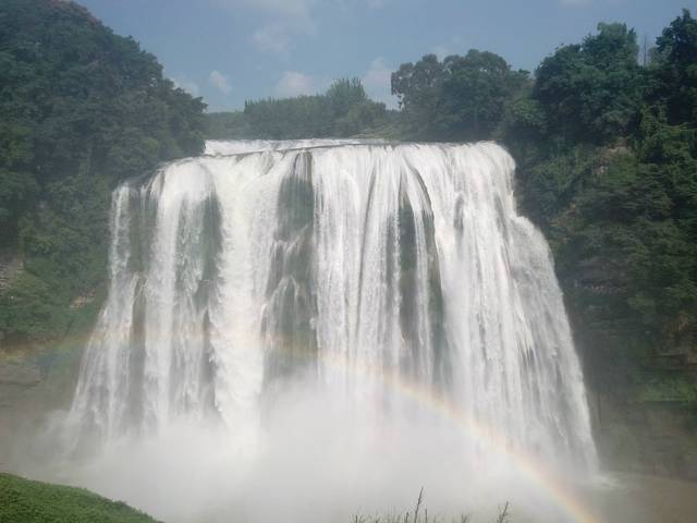 黄果树瀑布景区有三个景区构成。第一个景区是陡坡塘,西游记片头师徒淌水的场地,第二个景区是天星桥,瀑布一般,但走进去看看也还可以。不过很多导游带到一般就把游客带出去了。出租车上我听出租车师傅说过,师傅说后面的风景会好一点。真的是这样。我原先也跟着一个导游团走,结果真的半路就把我们带出去了,于是我又折腾回去了,继续走。第三个大瀑布,很赞,是瀑布群中最有看头的。网上说下午1、2点晴天能看到彩虹,我去的时候大概4点多了,已经不抱希望了,不过竟然还看到了彩虹,美丽!需要准备雨衣或雨伞。