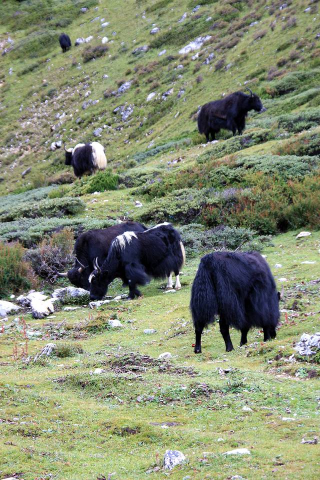 牛奶海边上散养了数百头牦牛,怡然自得地边上吃草。
