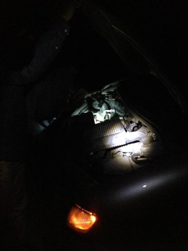塌方抢通后上路,行驶一小时多,车辆大灯变暗,遂用手电代替大灯赶路,10分钟后车辆熄火。救援车辆从四姑娘山赶来需4小时,遂安排新车从成都赶来。