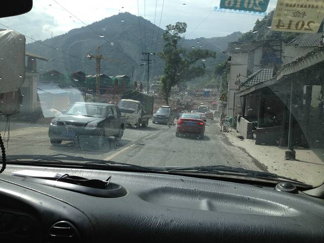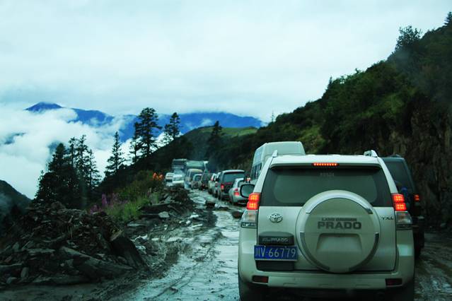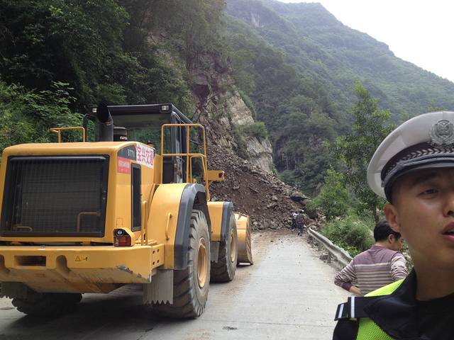 行驶上路不到2小时,遇前方塌方,挖掘机都不敢挖。等待3小时后抢通。
