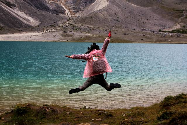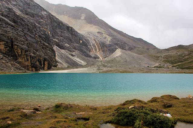 牛奶海,得偿所愿。。。。(建议大家越早爬越好,我们下午到的,遇到了冰雹,冻成狗啊,据当地人说牛奶海下午经常会有这样的天气)