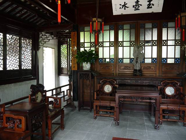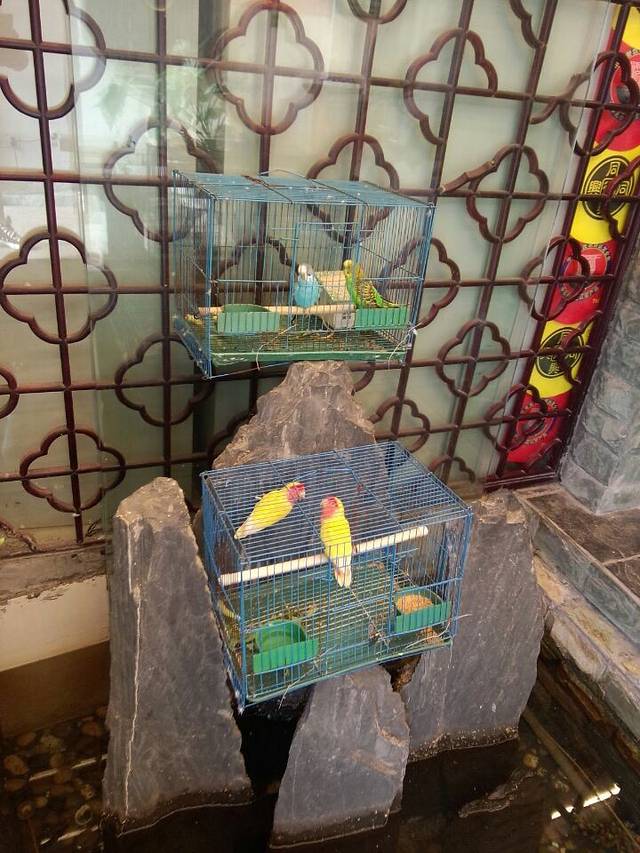 一楼后门有鹦鹉,还有室内小桥,古色古香有木有