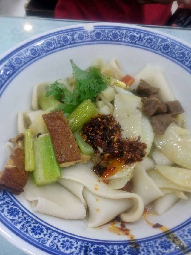 买了份老潼家擀面皮回酒店,味道不错。