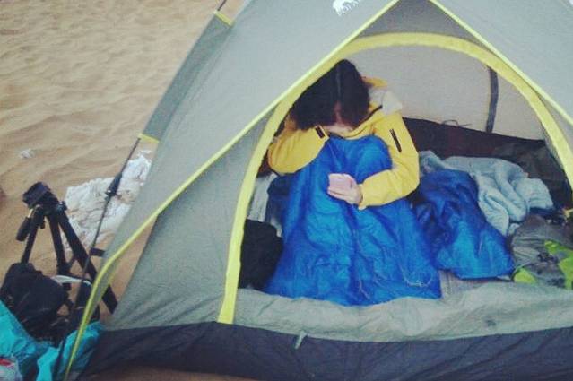 晚上露营在沙漠 漫天繁星 银河 美的让人心醉(不过夜晚的沙漠超级冷 风很大)定了闹钟5:30看日出 实在是太美...太美...
