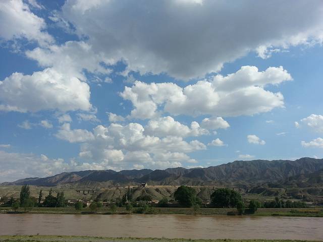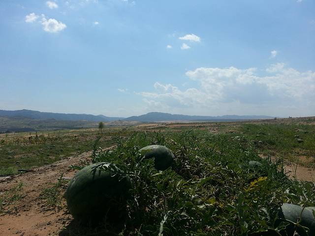 随后沿着公路徒步到回市区的大巴车站,走了大概两个小时 路上风景非常漂亮 有一片薰衣草地。还有西瓜地 当地的大硒砂瓜很甜 绝对天然生长(路上还有个大哥请我吃西瓜 嘿嘿 善良的西瓜老板)回市区的车站就在沙坡头黄河边的入口处。