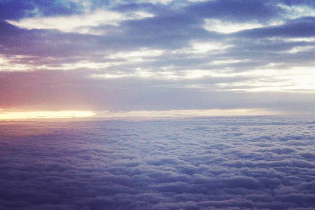 旅程结束。 第一次在天上看夕阳。