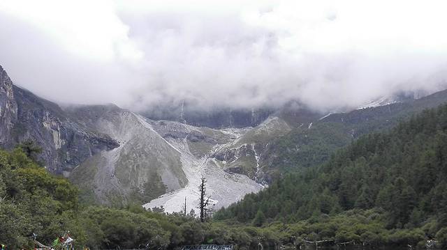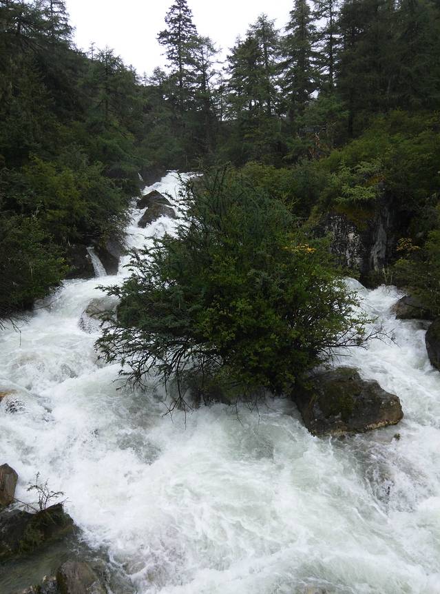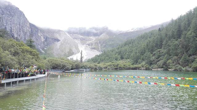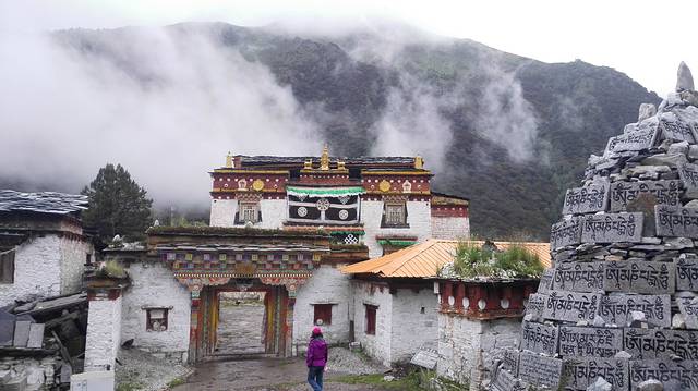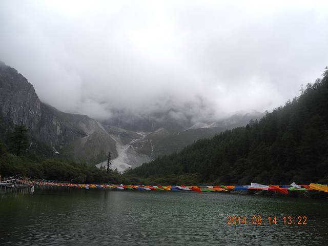 绵绵细雨依旧时下时停,天气湿冷,游兴不减,探奇的第二天。全体参观了稍显破败却又闻名遐迩的冲古寺(海拔3900),震撼它的庄重与朴实,既无凡尘寺庙的喧哗,也无所谓旺盛的香火,但它就静静矗立在高山之中,等着真正的有缘人的到来,寺内的鎏金彩绘柱和艳丽的唐卡画述说着它不朽的历史。历经1个多小时的跋涉,踩着满是青苔的圆木踏步,在松鼠小精灵的陪伴下终于抵达珍珠海时,雨停了,比起九寨黄龙,海子不算特别,远处的仙乃日神山隐藏在云层中,我们虽然等了约1小时,并欣赏了一曲高原《小苹果》广场舞,仍然是未等到仙乃日的全部尊容,小有遗憾。回程再次真正有精神欣赏高原草场与藏乡,翻越4512米的波瓦山口,沿着波涛汹涌的傍河边,黄昏穿过闻名遐迩的稻城万亩青杨林,安全抵达稻城县城。