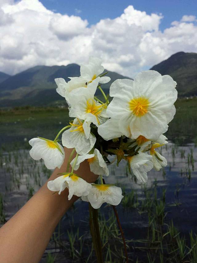清清的水,白白的花