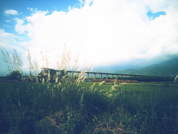 一眼看不到尽头的水渠无限向远处延伸,起点的芦苇在随风飘荡。