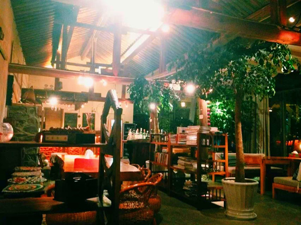 一家咖啡馆式的书店,店里不仅能看书,还能休闲,颇有情调。