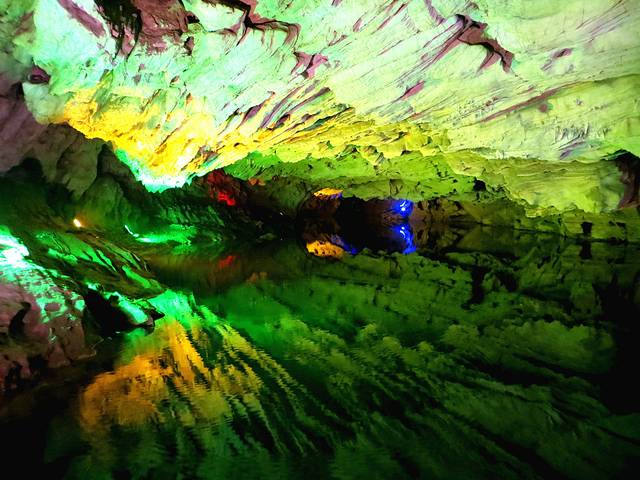 第一次进溶洞,全长四公里,跟着景区导游一口气走完了。