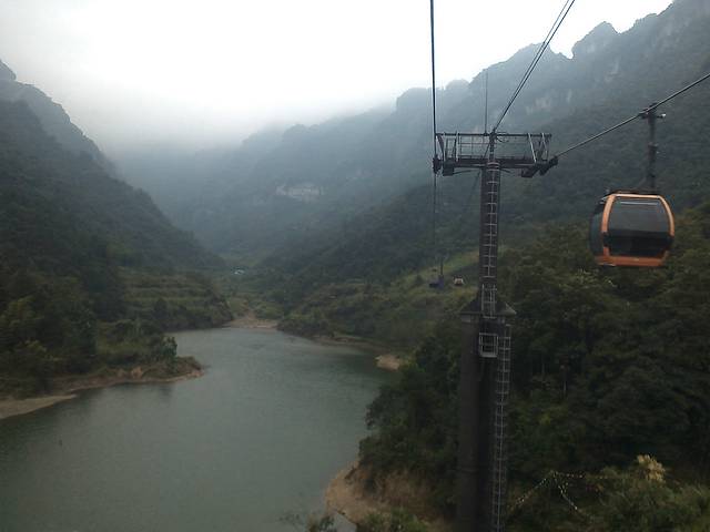 (4)看完天门洞就开始排队坐环保车到索道中站,乘坐缆车下山回市区了。