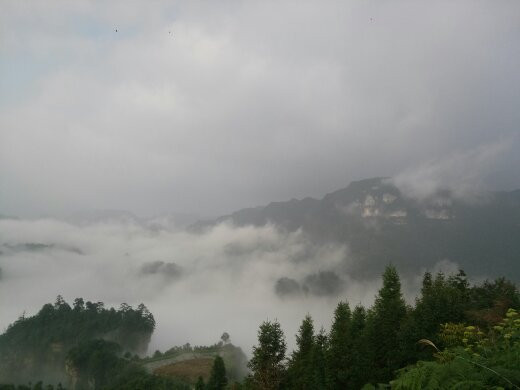 (1)一早我们就包车(30元一人)去了传说中的未开发出来的景点“老屋场”,空中田园特别美,远远还能看见白龙天梯的顶点矗立在云海中
