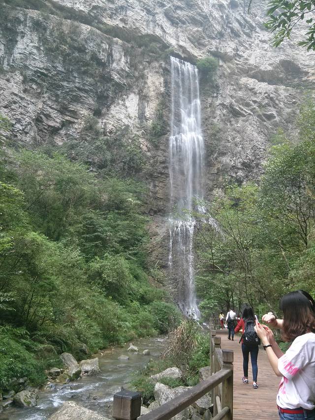 (3)这边也有个玻璃桥,下面就是一个小瀑布,站在上面,感觉好壮观,后面还有一个很黑的土匪窝像溶洞一样,还有一帘幽梦,乘坐邮轮游湖等景点,全程都比较轻松,不像前两天那么累的像狗一样,适合最后一天游玩。