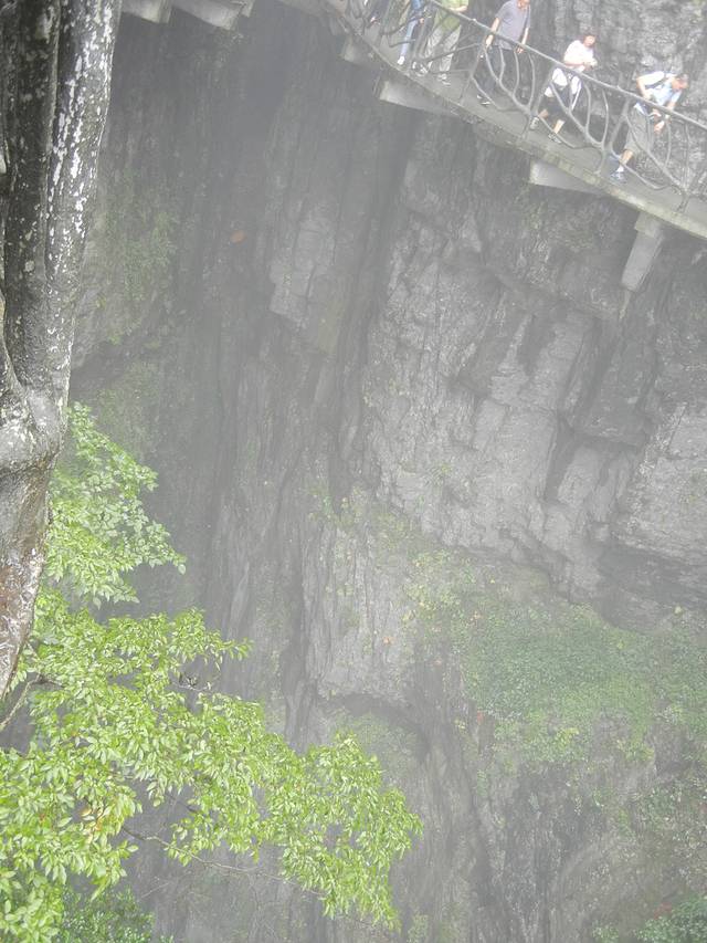 (3)之后阴差阳错走错路,本来想走捷径回到李娜别墅,结果走成了人少的东环线,不过很幸运。就因为走错了,我们才在下午2点从空中向下看到了几分钟传说中的天门洞(仙境美爆了)之后虽然也从下面爬天梯上到天门洞,不过被大雾笼罩完了,我们太幸运了!