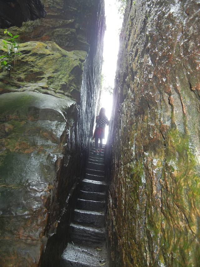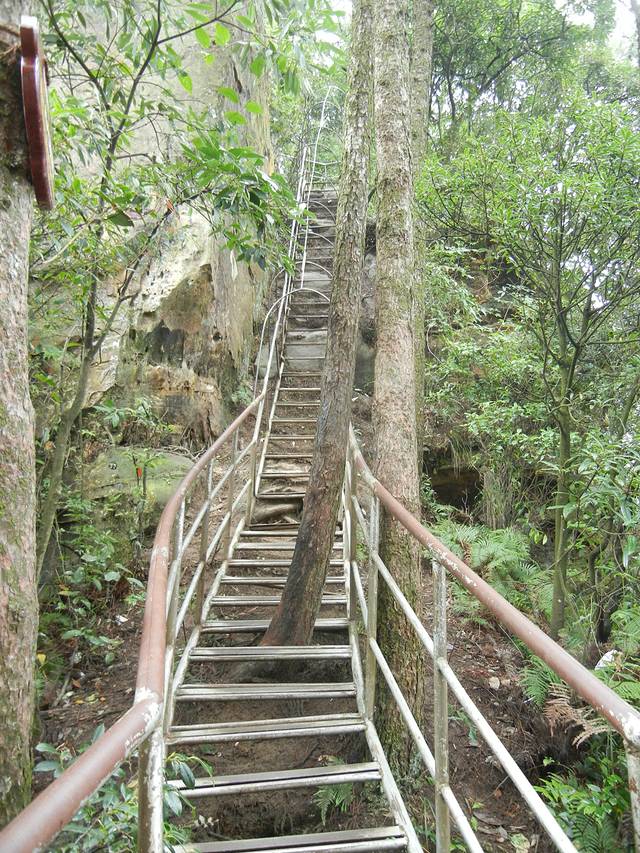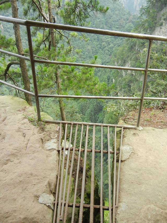 (2)下车后根据指路牌,先去的乌龙寨,那边有著名的“不得不低头”和“一线天”悬崖陡峭,惊险刺激。然后就是我们最爱的天波府之“一步登天”了,据说是整个张家界最高的景点,我们是大汗淋漓的爬上那个立在山尖尖上的垂直的靠山钢梯,没得任何保护,一览众山小!!太壮观了,很丢脸的腿软了一分钟才重新爬起来。