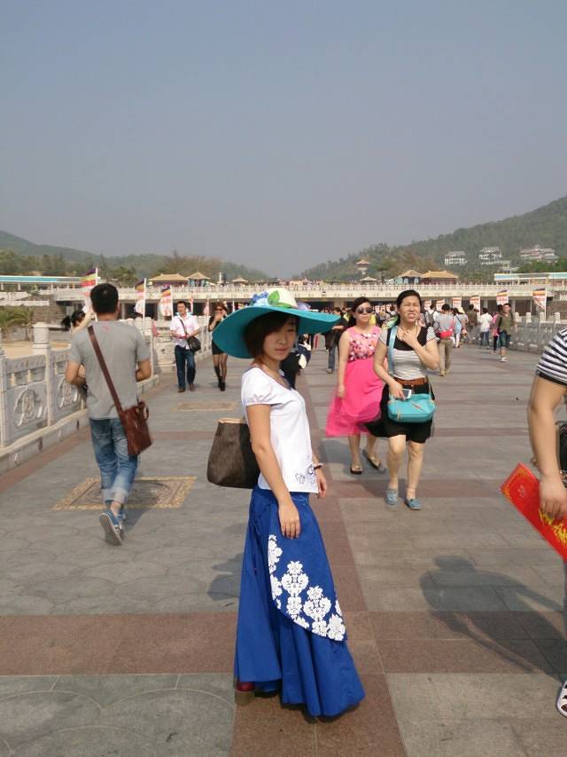 由于前一天晚上从广东来到海南又是汽车又是轮船的,折腾一晚,所以第一天上午先补了一觉,下午在三亚市区转了一下,三亚卖波西米亚民族风大长裙的地方好多,还挺便宜,我没经受住诱惑,买了一套民族风的,头上还别了一朵大蓝花,借了她们室友的大草帽,太符合当地民风了,O(∩_∩)O哈哈哈~