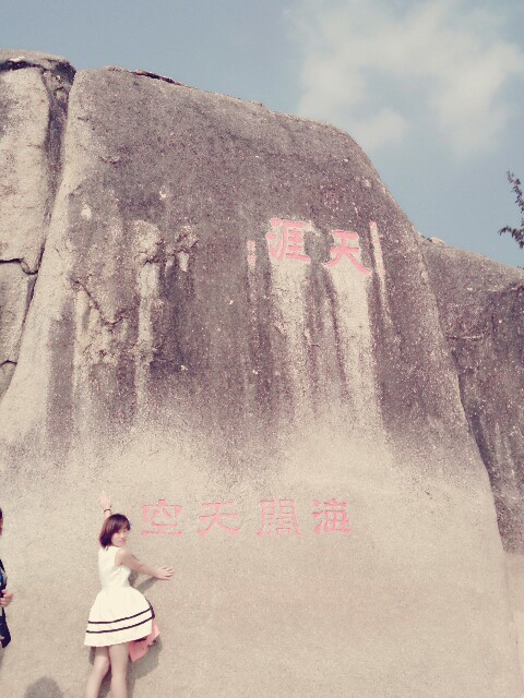 有些人爬到了石头的最上面。。石头很滑,有些危险。。