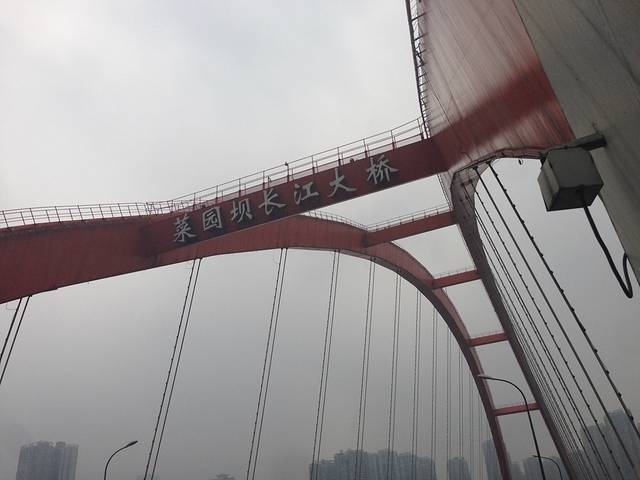 上了楼梯穿过长江大桥,可是今天重庆的雾霾特别重,什么都看不清楚