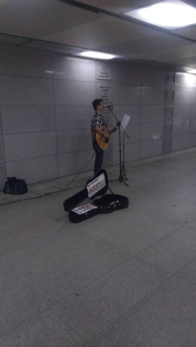 地下通道的流浪歌手,唱的感觉不错,虽然我也不懂,还是给了一些零钱