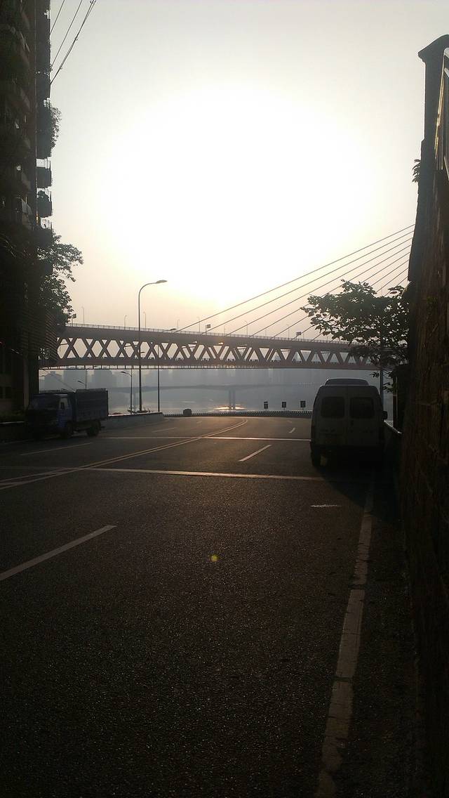 在两路口的天桥上拍的,重庆各种立交桥,酷到不行,并且轻轨感觉在飞