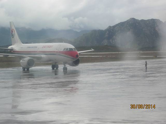 快到的时候你会发现窗外已经是崇山峻岭,还可以看见远处的雪山,此时是深秋时节,然而高原地区已然是寒冷的冬季。九寨沟机场全名叫九寨黄龙,海拔3000多米,就是一下飞机你就会感觉头昏,高原反应就出现了。