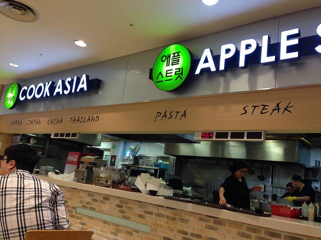 第一天的中饭在e-mart吃的,7000韩元,别看简单,非常美味,泡菜很正。点菜是用机器点的,上面只有韩文,根据图片选择吃的套餐。选好了让服务员帮忙确认,因为不懂韩文,不知道“确认”两个字是怎么样的。这里有段小插曲:一开始,我以为是服务员过来点餐的,坐下来以后发现她怎么不招呼客人啊,于是上前问了她,用蹩脚的英语,可是她不懂英语,就在很困惑的时候,看见两个东南亚人站在机器前,聪明的我一下就想到了用机器点餐,于是就跑了过去,我让那两个foreign先点,结果她们也不会,于是我先,等我选择好图片,木了,哪个是确认啊,看不懂,于是foreign叫来了服务员,终于在完成了我在韩国的第一顿饭,不容易啊!