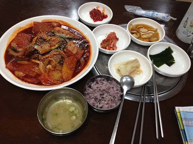这是第二天在东门市场海鲜“大餐”,就我一个人,点多了也吃不掉,就点了一份大鱼,可真的是好大一盆啊。吃的我撑死了,最后不得不浪费点。味道很好。还少付了1000韩元,因为不能刷卡,只有这么多韩币了。