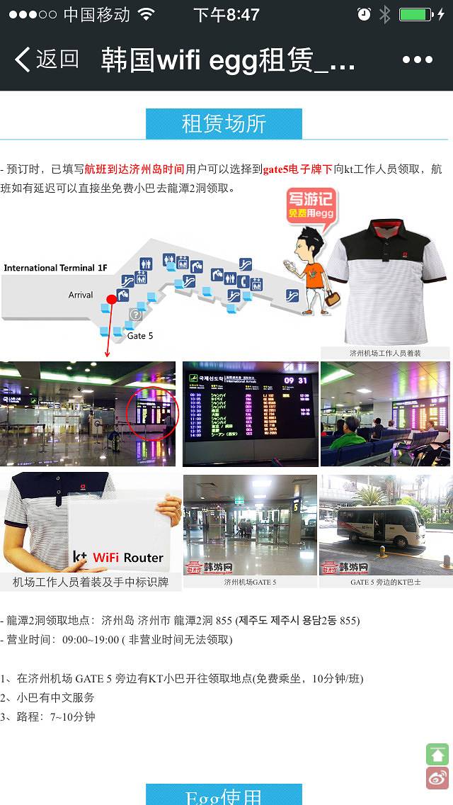 WiFi egg工作人员的服装确认,他们会等在接机口,带你去领WiFi