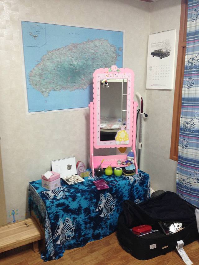 第一晚Jeju Pilgrim BnB(Guest house)在西归浦市,价格190RMB,一个房间一个上下铺,我一个人住。很干净,主人是两位女生,周围是一大片橘子林,开窗是满眼的绿色,非常安静的小屋,羡慕她们平和的生活,不是每个人都能够如此安静的生活的。