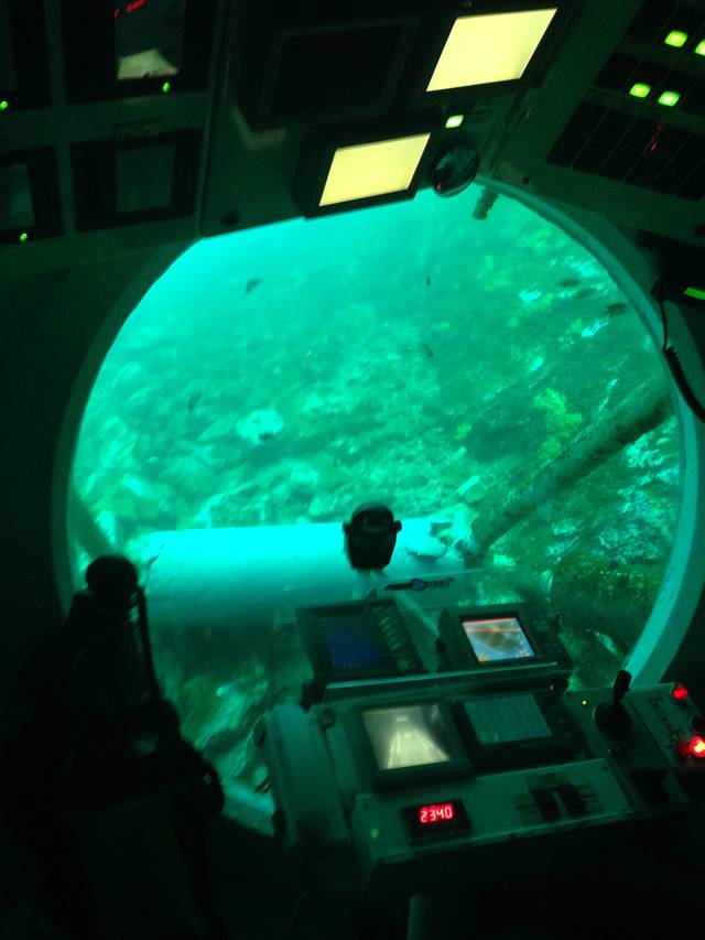 5、我在“济州岛离线地图”找到了有个地方可以乘坐潜艇,于是就在上面提供的网站上,去预订门票,价格很贵,要300元RMB左右,时间大概1个半小时,坐下来感觉不是很过瘾,就是很新鲜。所以你们自己决定到底要不要做,如果要坐一定要在网上提前预定。