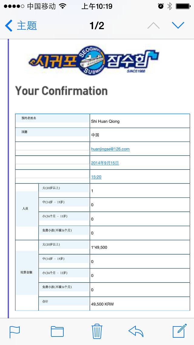 潜艇的预定单也截屏了,还要打印下来哦,现场买票的时候要,好像这个只能在手机上定,在电脑上定不了,缺啥软件