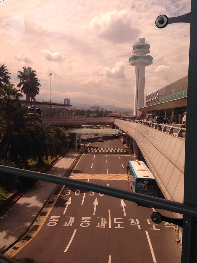 早上7:30的航班,到达济州岛是10:05,因为济州岛是韩国时间,比北京时间早了一个小时,掐指一算,飞机的飞行都不超过1个小时。从飞机上往下看,济州岛真的很漂亮,一切整齐有序,矮矮的房子,让你感觉一切都很轻松。不扯开去了,继续。(补充:飞机上,乘务员会给你发三张单子,报关单、身体状况单、入境单,你可以选择在飞机上填好,还可以到了机场再填,那边有提供笔的。我是在飞机上先填好,到机场直接排队,一张单子一个窗口,共三个窗口,分别给他们)。