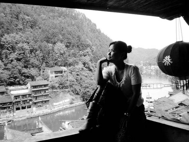 一脸的疲惫,先在住的客栈的阳台拍张