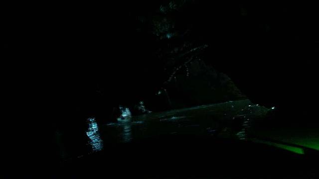 黑漆漆的,只有水声,感觉挺静。