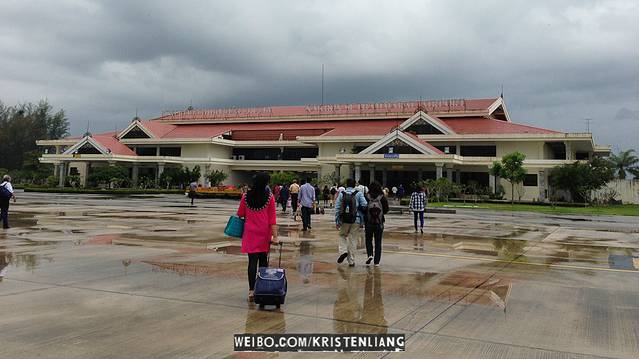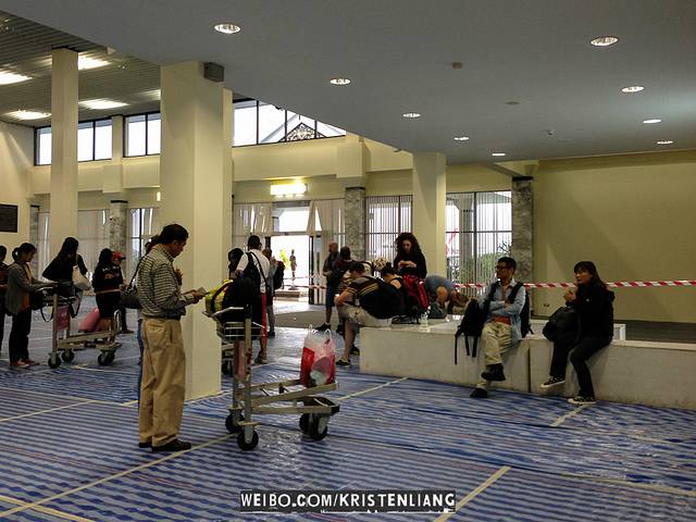 機場很小(剛好在翻新),下飛機一進去就可以看到亞航的工作人員,先等行李,拿了行李走出去又有一位亞航的人,憑登機牌問他拿一張坐巴士的貼紙,上車會檢查。沒有貼紙就付錢。