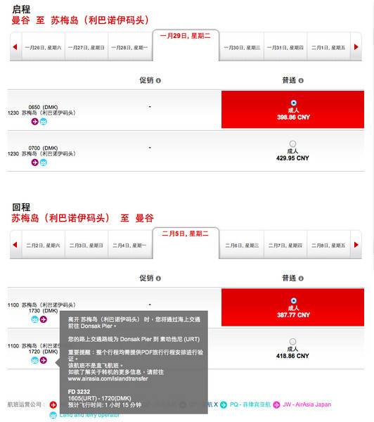 ------> 亞航從2012年10月推出了從曼谷來往泰國幾個島嶼的直達海島接送服務,其中就包裹了蘇梅島/帕岸島/皮皮島等。基本上這個服務就是包括:機票、船票、機場碼頭的接送。12月中旬的票價(非促銷)三人 RMB$2276 (包括40KG托運和機上餐飲),比起直飛真是非常超值~ 便宜的代價就是辛苦一點,車船都比較舊。