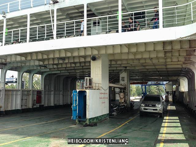 同樣,很舊的渡輪,上層坐人下層放車。船上有個小賣部,泡麵熱水飲料都有。坐船時間比亞航預計的短,一個半小時左右。下船就是各自找車去酒店了,這麼碼頭沒什麼人,喊價有點高,反正就能砍則砍(不過蘇梅的交通費真有點高)