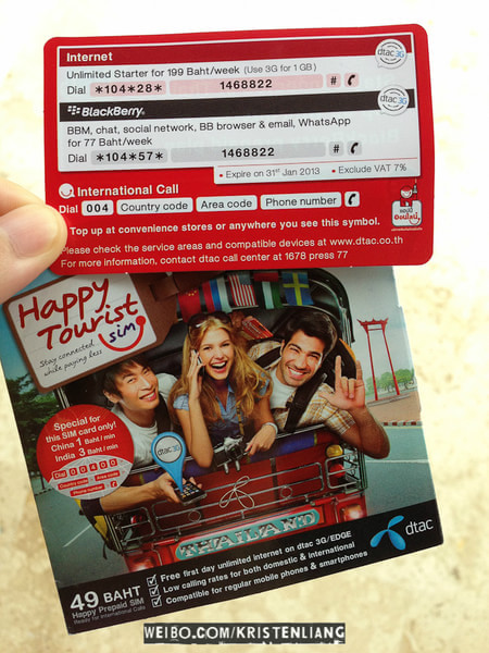 推薦DTAC電信的happy tourist card,新機場/市區的7-11都有售,約RMB$10。普通SIM卡,小卡,iPhone 5的 nano sim自己剪了也可以用。happy卡有一天的免費上網,可以自己增值3G上網套餐,有一周無限上網 $40、一個月無限上網 $80,充值後手機激活即可使用,支持個人熱點。套餐詳情:http://t.cn/zjohGLT (網站價錢未含7%,要充夠錢)打回國每分$0.2,注意千萬別直撥,前面要按一串東西(見圖)